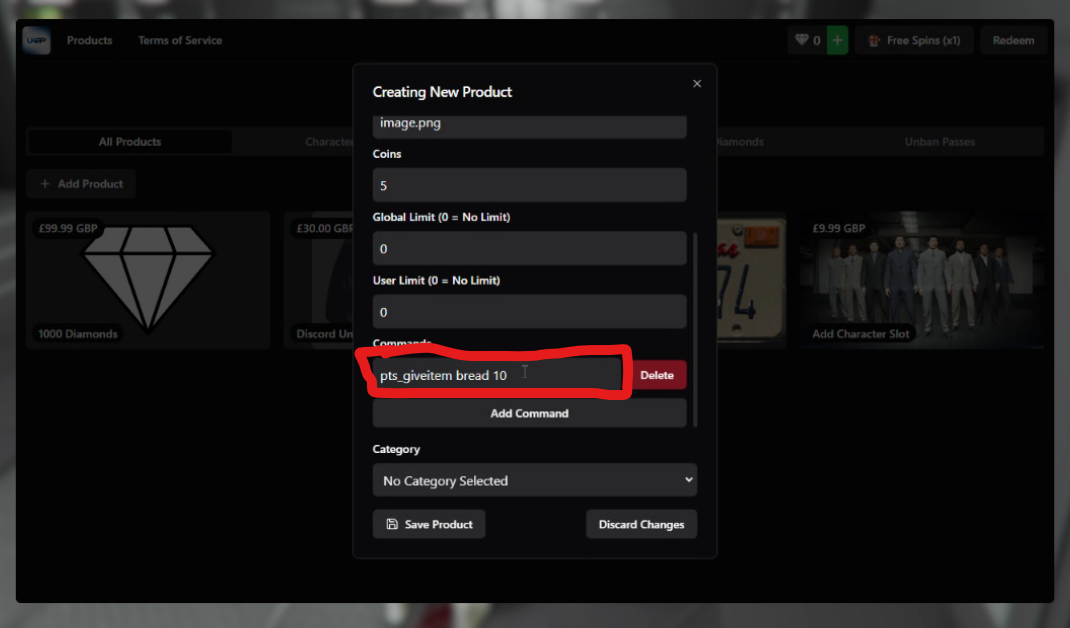 You can use products in Pickle's In-Game Shop from both Tebex and Coins.\